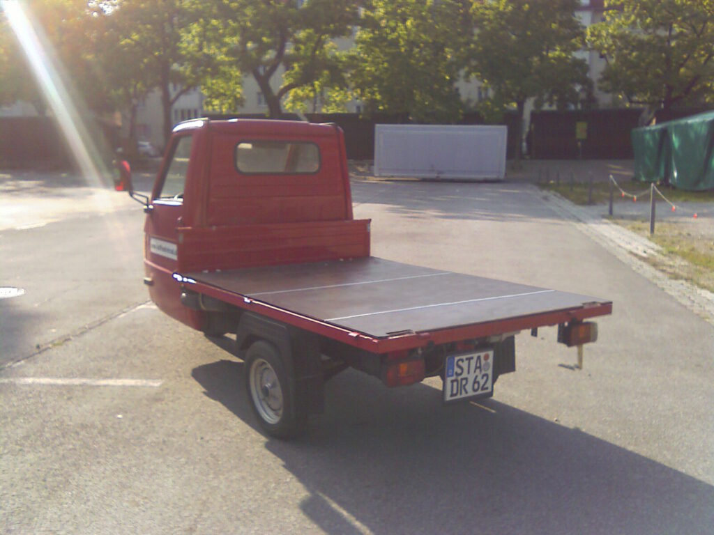Um dem Regelwerk zu entsprechen, wird der Tank der Ape von uns nach Ankunft bis auf 2 Liter Benzin geleert und der Tankdeckel verschlossen. Die Batterie wird von uns vor Ort ausgebaut.