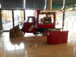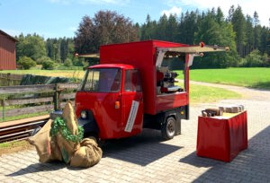 Motorisierung/Brandschutz: Motor nicht vorhanden, kein Öl und Benzin! Keine Brandgefahr! Dreirad Modell B ist ein Anhänger ! Wenn mit Benzin oder Diesel betriebene Fahrzeuge aller Art indoor platziert werden, gibt es für unsere Auftraggeber normalerweise etliche Vorschriften zu beachten, unter anderem Brandschutzmaßnahmen, feuerpolizeiliches Procedere, Zusatzversicherungen All das entfällt bei unserem Modell B! Es ist ein Anhänger! Es gibt keine brennbaren Flüssigkeiten und auch keine entsprechenden Gerüche… Es riecht nur nach leckeren Espressi & Co. Unser Modell B ist somit perfekt geeignet für Messehallen, Produktionshallen, historische Gebäude, Museen, Scheunen und dergleichen mehr. Genießen Sie diese unkomplizierte Variante des indoor-Betriebes. Sie erspart viel Zeit und Aufwand. |