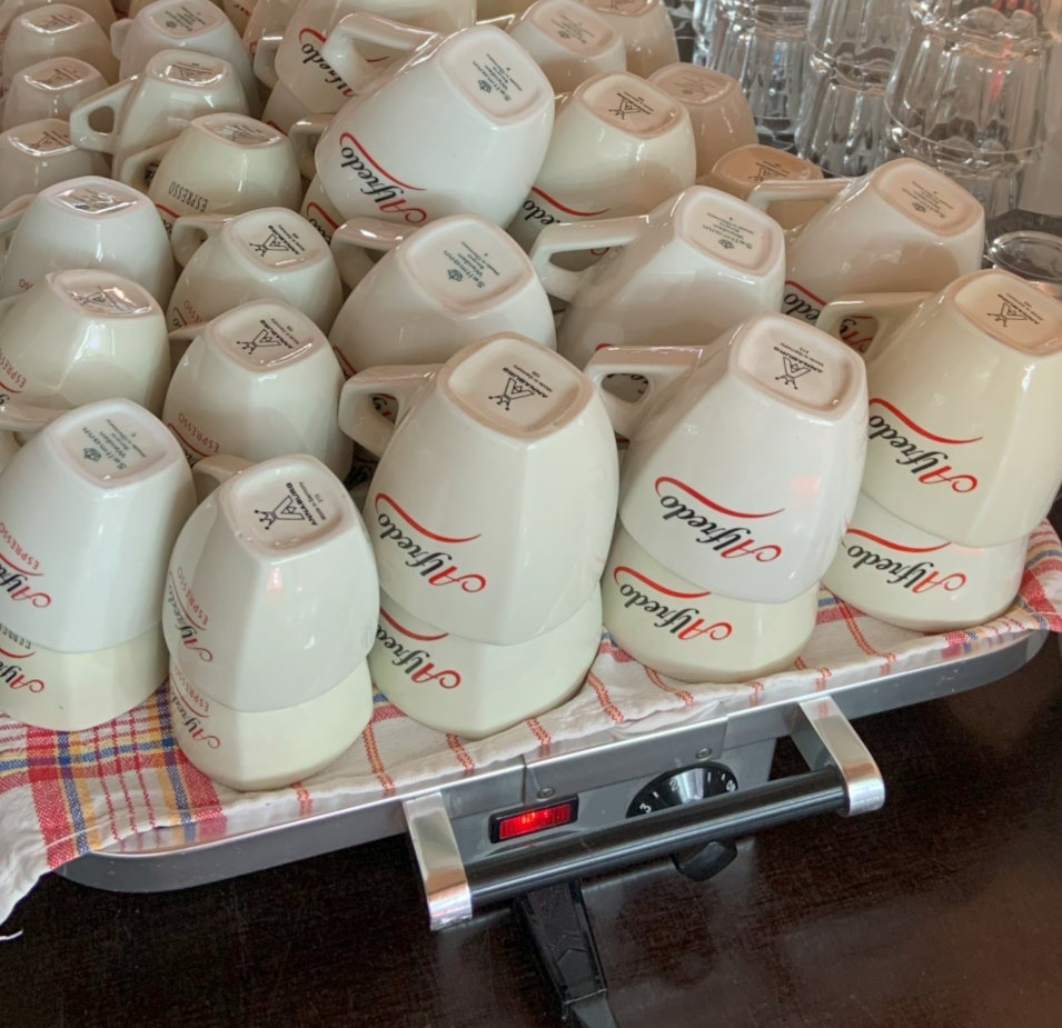 Vorgewärmte Tassen sind für Espresso sehr wichtig, um den Temperaturverlust des Getränks zu minimieren und so das volle Aroma und den besten Geschmack zu erhalten. Bei Verwendung der Wärmeplatte stehen ständig insgesamt 200 vorgewärmte Tassen griffbereit zur Verfügung. Unsere Wärmeplatte ist sehr zu empfehlen, besonders für  Stoßzeiten