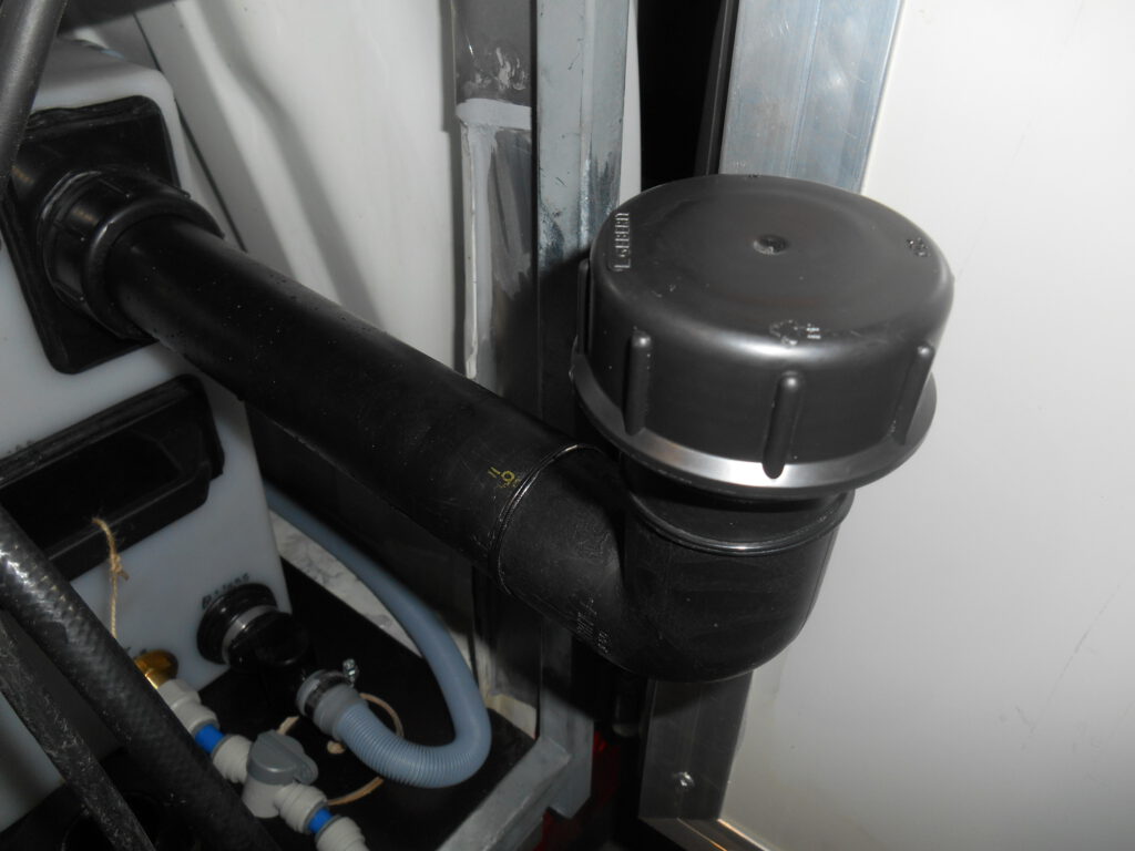 Zum Auf- und Nachfüllen des Trinkwassertanks verwenden wir tragbare Wasserkanister ( 50 cm hoch) + Sackkarre.